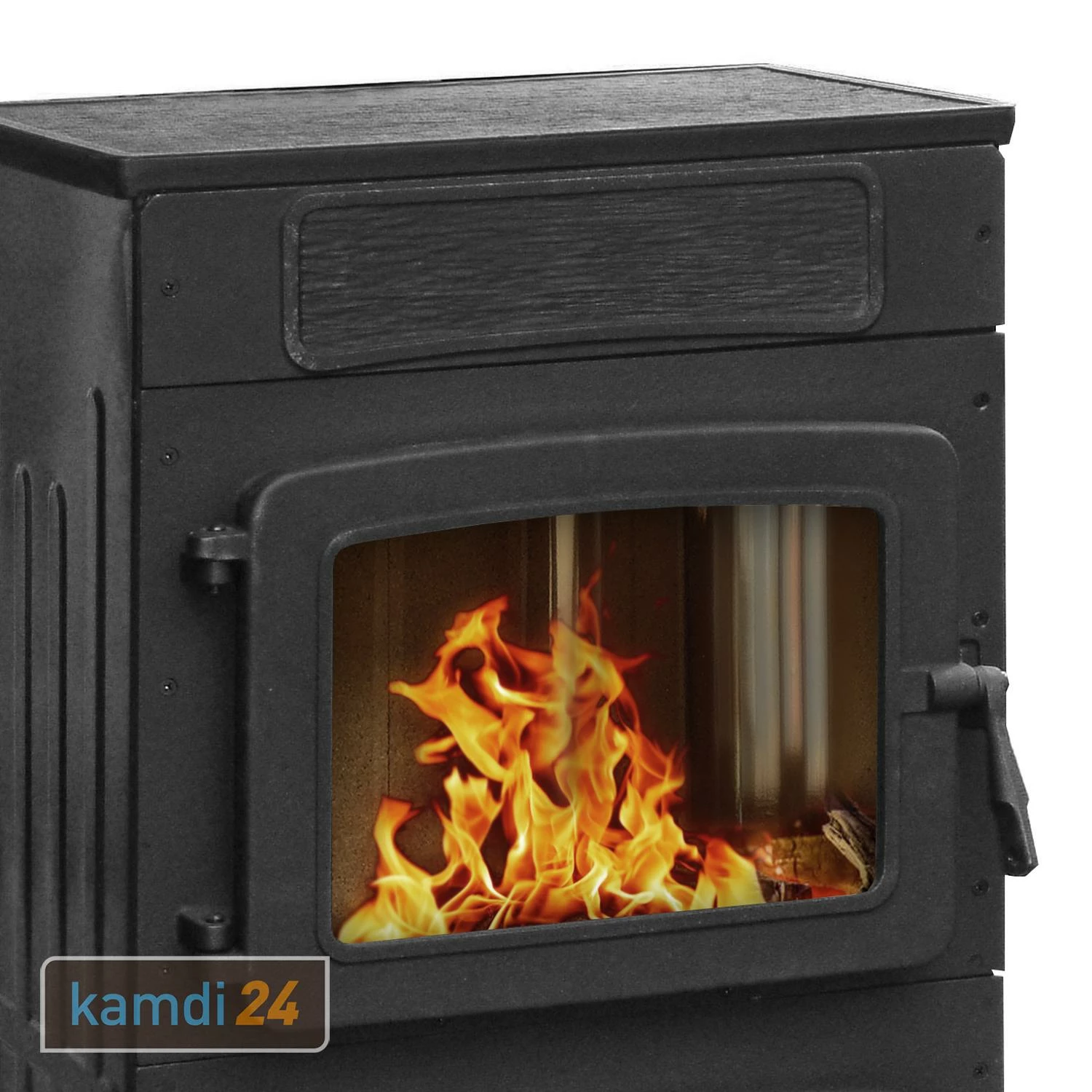 Der klassische von überzeugt mit einer stabilen Konstruktion aus Gusseisen und Stahl sowie einer Nennwärmeleistung von . Die breite Fülltüröffnung ermöglicht das Einlegen von Holzscheiten mit bis zu 33 cm Länge. Alternativ kann der massive Kaminofen auch mit Braunkohlebriketts betrieben werden – dadurch eignet er sich für einen .