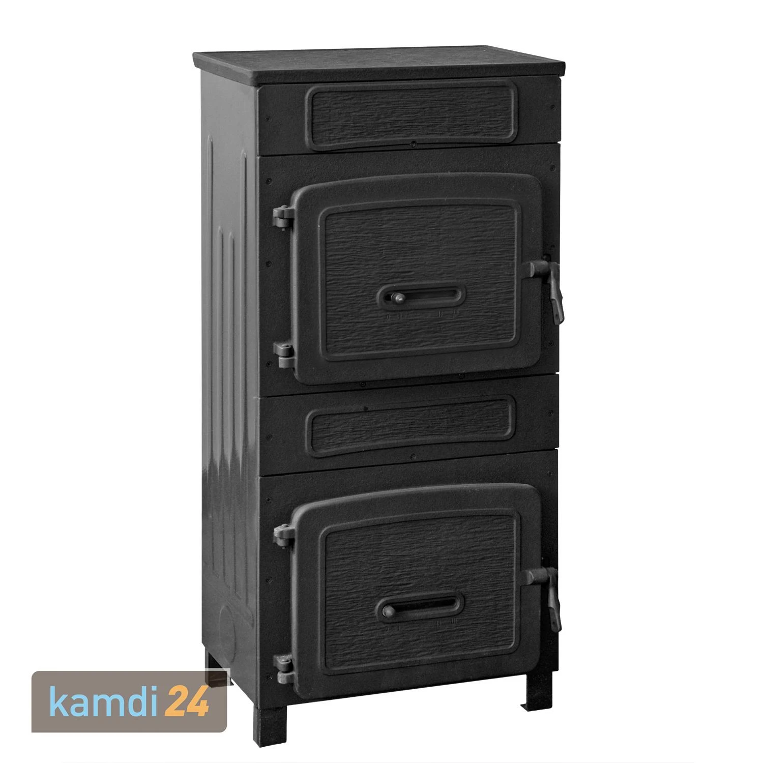 Sie erhalten diesen Werkstattofen bei uns in drei verschiedenen Varianten: Eine schlichte Ausführung mit zwei Gusstüren, ein Modell mit Sichtfenster sowie eine Version mit Sichtfenster und Rauchrohranschluss oben. Die jeweiligen Brennraumtüren bestehen alle aus massivem und langlebigem Gusseisen.
