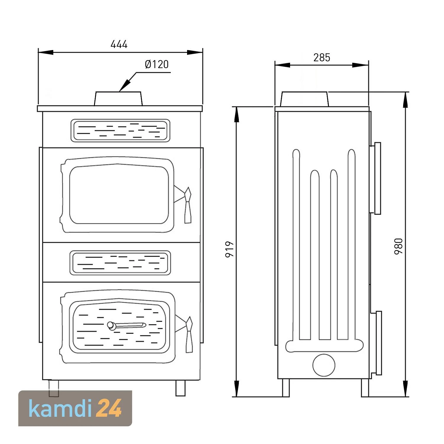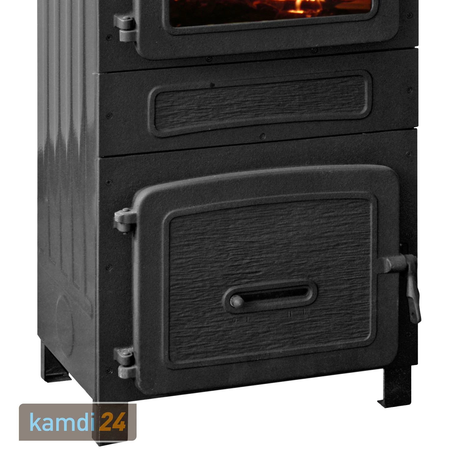 kann über 24 Stunden hinweg im Dauerbetrieb heizen. Er ist in der Lage, sowohl Holz als auch Braunkohle zu verbrennen. Da Holz die Glut nicht so lange hält wie Kohle, muss hier regelmäßiger Brennstoff nachgelegt werden.