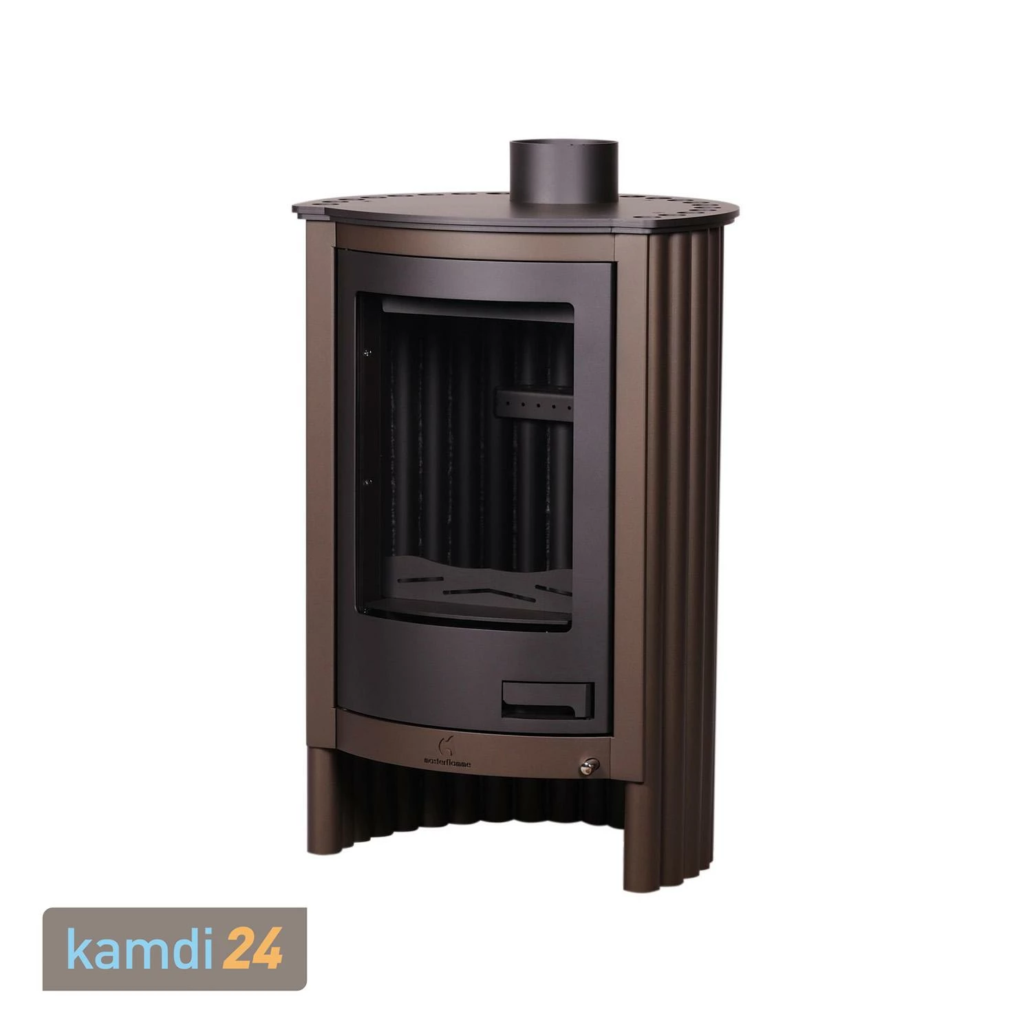 Die Verkleidung, die den Brennraum umgibt, ist aus gefertigt. Der Brennraum selbst verfügt über eine selbstschließende Tür, in der eine feuerfeste Panoramascheibe eingelassen ist. Diese Scheibe hält stand. Eine Abgas-Umlenkplatte im oberen Teil lenkt die Abgase in Richtung der Rauchrohre. Ein gusseiserner Rost und ein Aschetopf erleichtern die Reinigung.