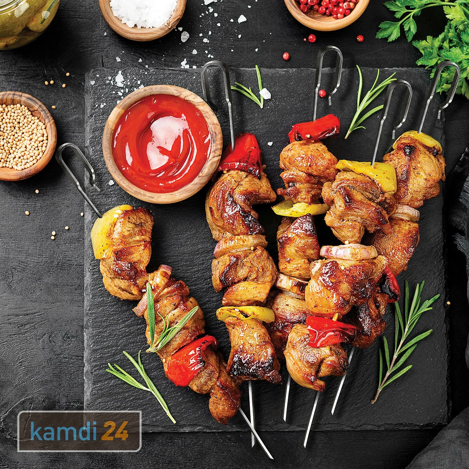 ✓ 3-teilig: Spieße (6 x), Halterungen (2 x), Aufbewahrungstasche (1 x)