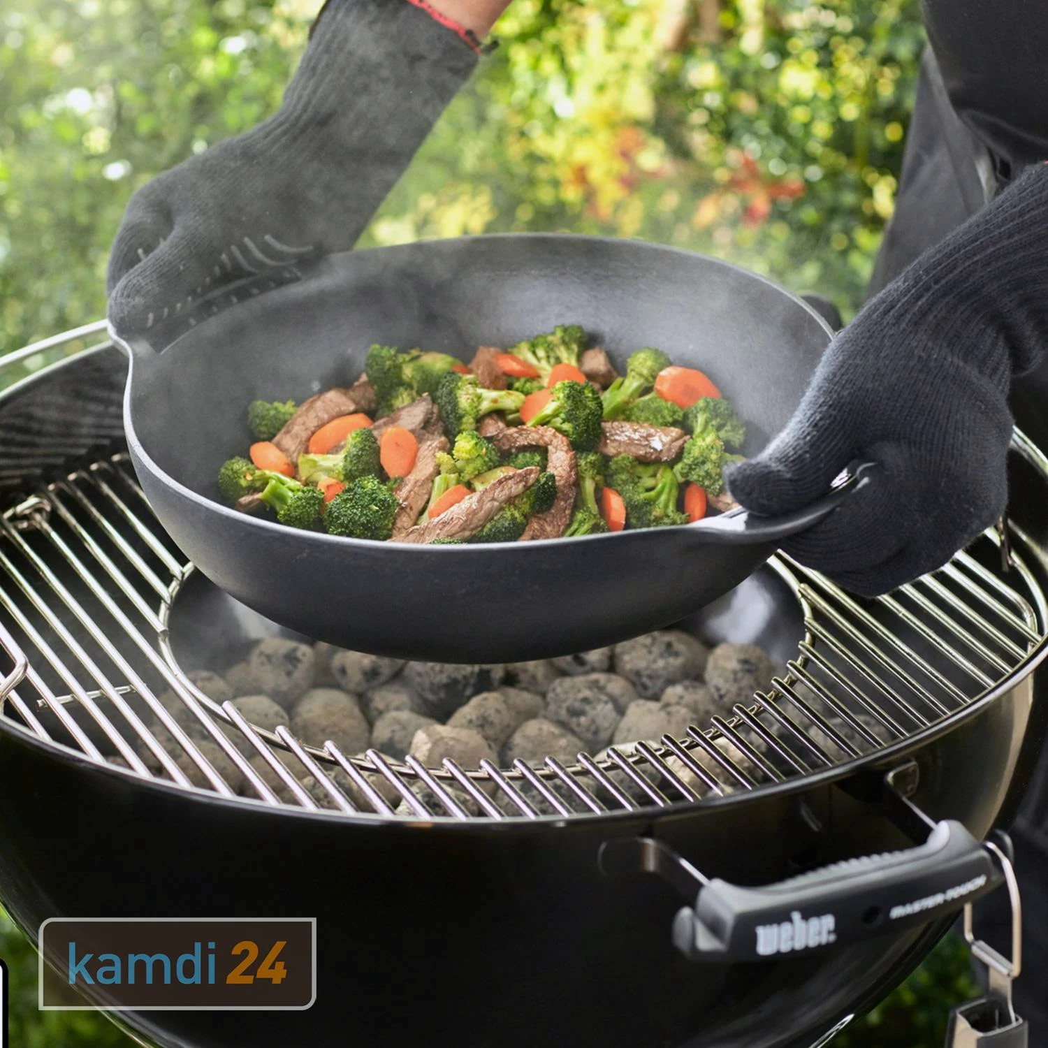 Der von ist mit einem ausgestattet, damit du vielfältige Gerichte vom Grill zubereiten kannst, z. B. Suppen, Curry, Schweinefilet oder gedünstetes Gemüse. Der Wok passt in die extra erhältlichen für die entsprechenden und sowie dem bereits vorhandenen Grillrost im und den . Der mittlere Einsatz wird einfach mit dem Wok ausgetauscht.