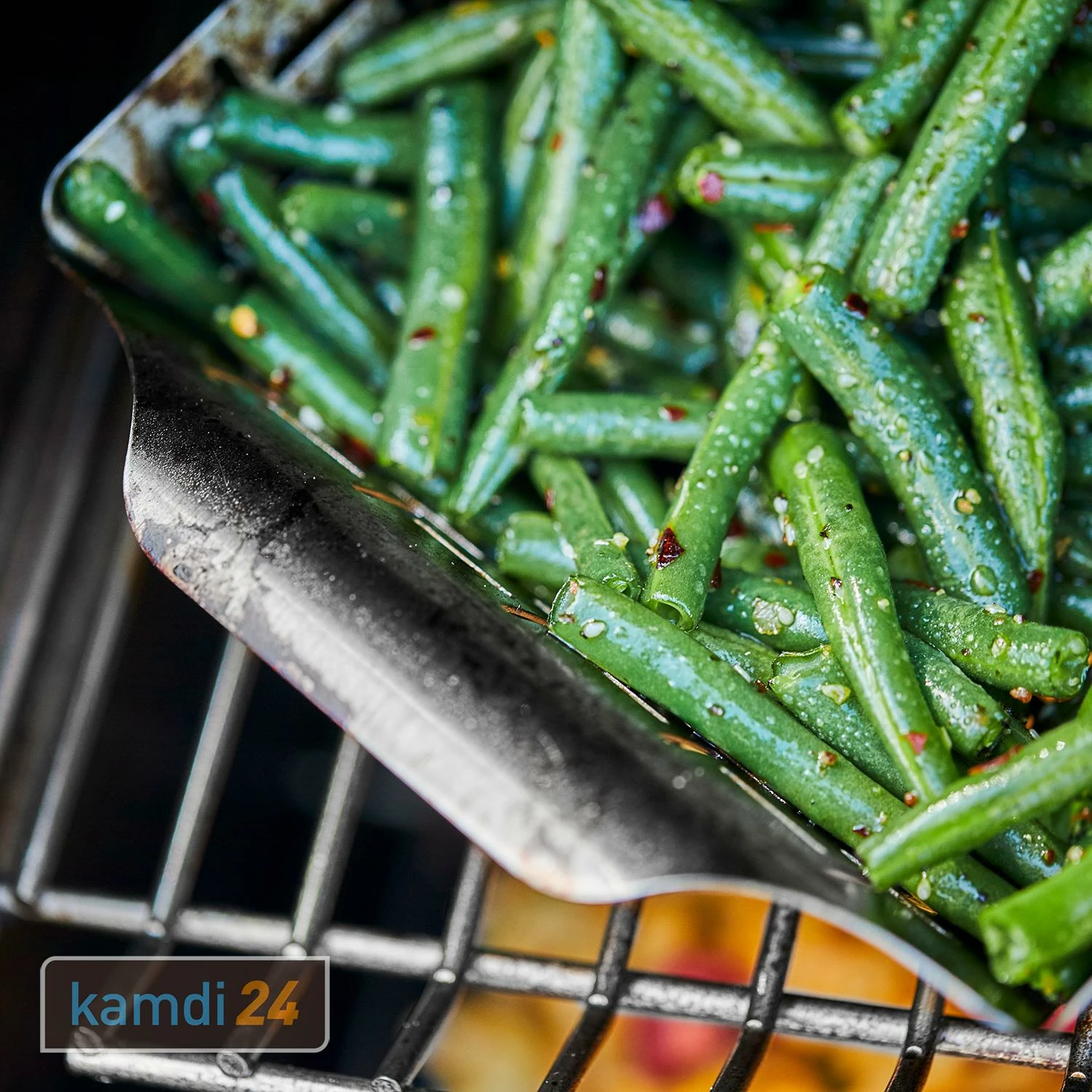 Der von Weber besteht aus Seiten, um darin kleinteiliges Grillgut zuzubereiten, von Gemüse bis Fleisch. Der Grillhalter schützt die Speisen vor den Flammen und dem Herunterfallen in die Glut. Den Grillkorb gibt es in den zwei Ausführungen – Deinen Favoriten bestimmst du über das .