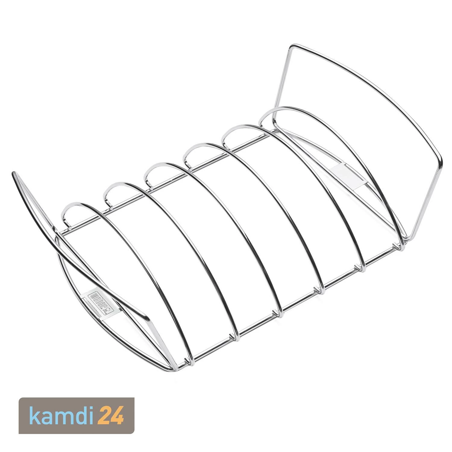 Der von Weber hat nicht nur Platz für Rippchen, sondern kann umgedreht auch als Korb für einen genutzt werden. Das Rack besteht aus , ist leicht zu transportieren und zu reinigen.