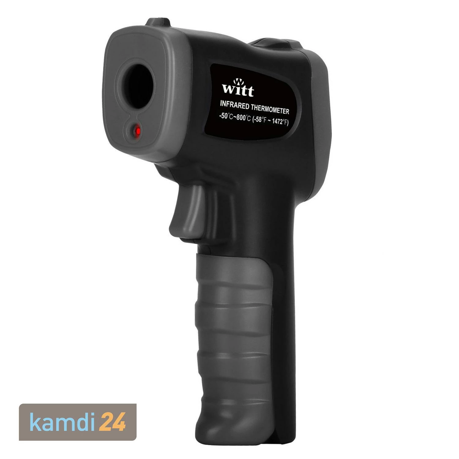 Das Infrarot-Thermometer kann Temperaturen in einem Bereich von messen. Im Lieferumfang enthalten sind eine und zwei Batterien.